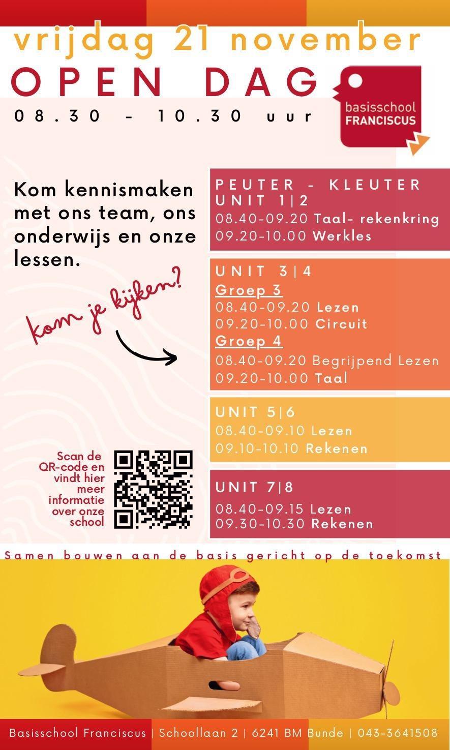 Als jullie ouders kennen die nog op zoek zijn naar een fijne plek voor hun kinderen om te leren, laat hun weten dat ze van harte welkom zijn op 21 november.